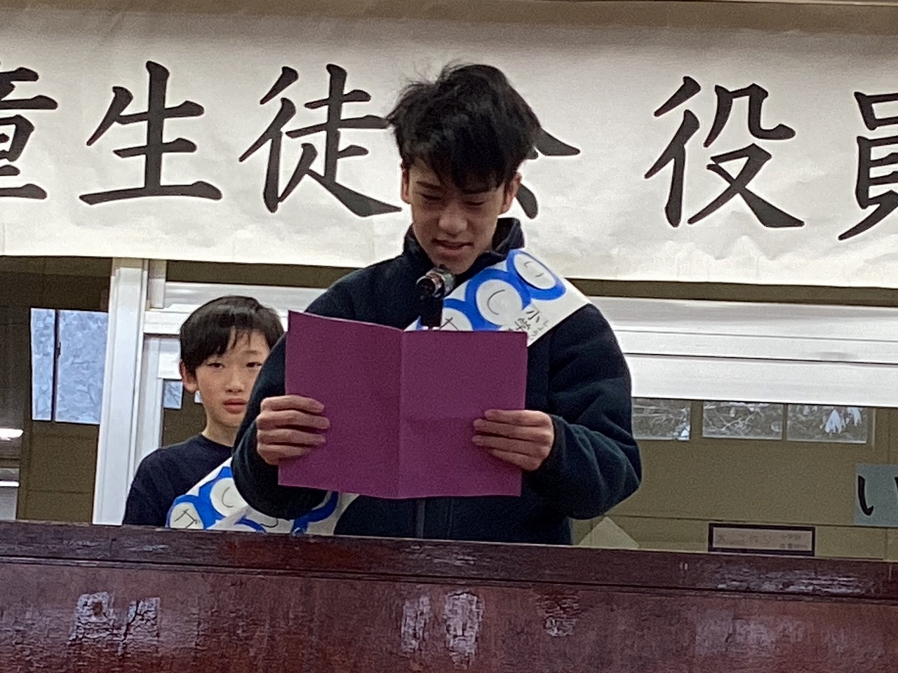 また、式終了後は、児童生徒の代表から「冬休みの思い出」や「3学期に頑張りたいこと」等の発表や、選挙管理委員会から「児童生徒会役員選挙」についての連絡がありました。