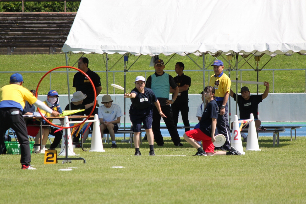 9月12日(金)秋田市を会場にフライングディスク、グラウンド・ゴルフ、ネオホッケー、そして、自校開催ピン倒しボール(HOME区分)が本校体育館で行われ、本校からは、小学部4年生以上の総勢65名が参加しました。フライングディスクでは、緊張感の中、一投一投集中して投げる姿や最後まで諦めない姿が多く見られました。初出場で、アキュラシー種目・ディスタンス種目ともに優勝に輝くなど、貴重な経験ができた生徒もいました。アキュラシー種目では優勝2名、第3位1名、ディスタンス種目では優勝2名、第3位1名と好成績を収めました。
