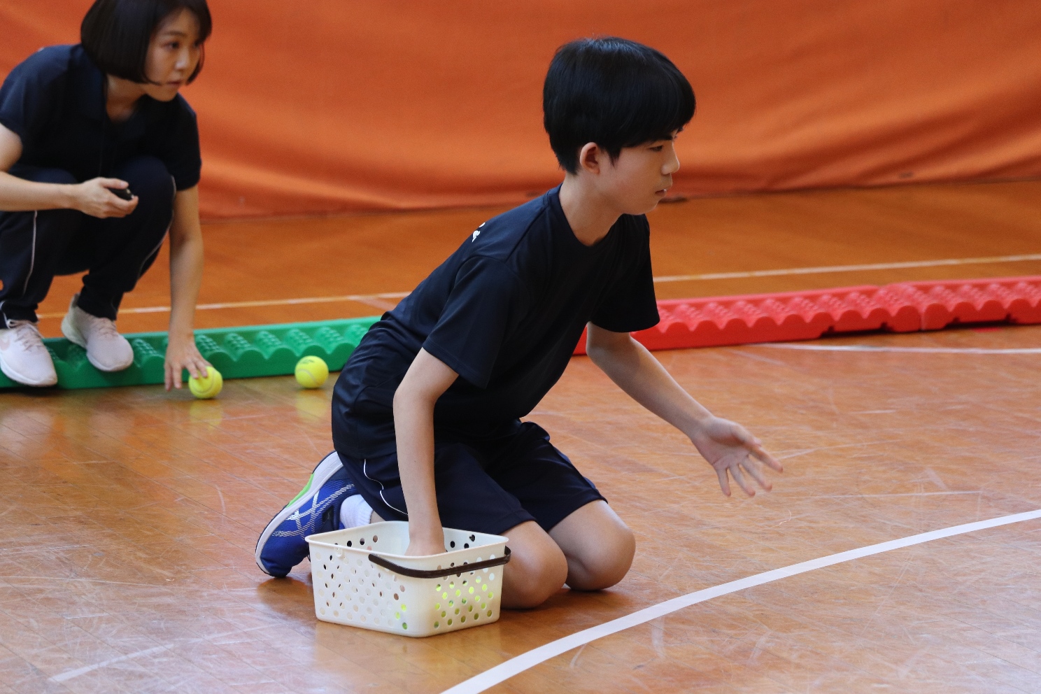 自校開催のピン倒しボールでは、小、中、高等部の総勢42名が参加し、緊張しながらも堂々とした姿での選手宣誓とともに大会がスタートしました。競技が進む中で、声援も大きくなり、大いに盛り上がりました。中学部チームが、見事、第3位に輝き、続いて第4位に小学部チームが入るなど、どのチームも好タイムを記録しました。「楽しかった」「またやりたい」などの声が多く上がりました。