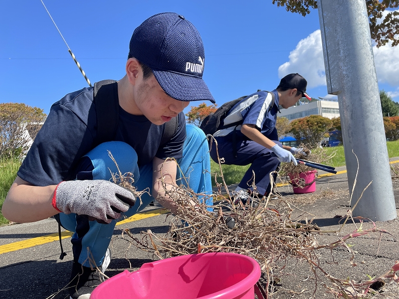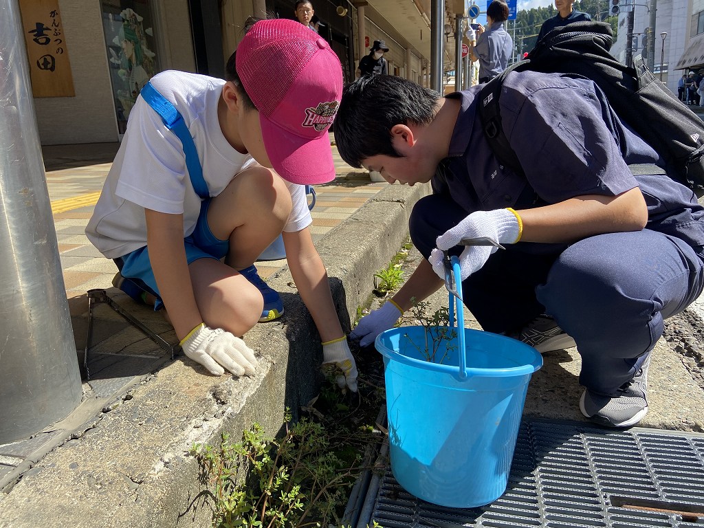 9月30日、少し暑さを感じるほどの秋晴れの空の下、今年度2回目のいーな・きらきらプロジェクトを行いました。全国からたくさんのお客様を迎える「全国まるごとうどんエキスポ」の開催を前にして、今年からは清掃エリアを拡げ、サンロード、大町、柳町の各商店街に加え、ジークブルガー通り、湯沢駅前、湯沢市役所周辺の清掃を新たに行いました。歩道にごみはあまり落ちていませんでしたが、歩道と道路の間には草がたくさん生えていて、草を全て取ると道路がとてもきれいになったことを実感しました。